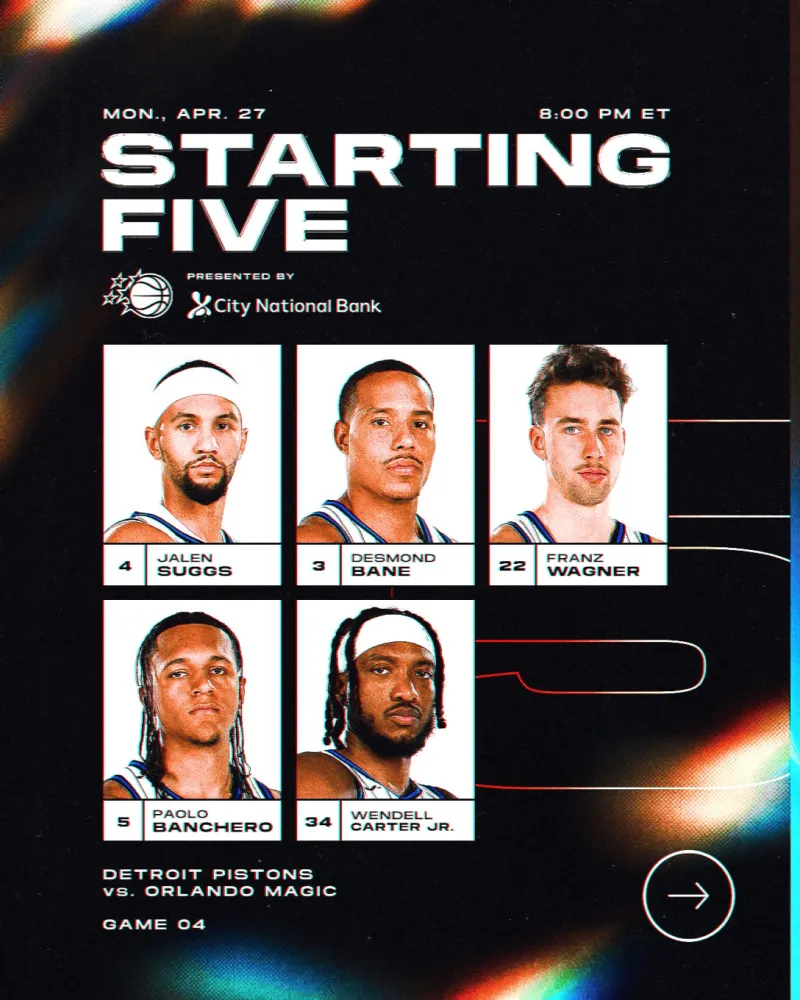 虎扑04月28日讯 今日NBA季后赛G4,魔术(2)将对阵活塞(1)。魔术首发:萨格斯、贝恩、瓦格纳、班凯罗、温德尔-卡特来源:X虎扑04月28日讯 今日NBA季后赛G4,魔术(2)将对阵活塞(1)。魔术首发:萨格斯、贝恩、瓦格纳、班凯罗、温德尔-卡特来源:X...