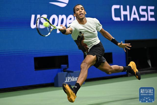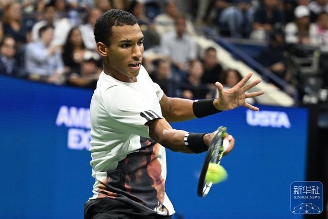 ↑ 奥热-阿利亚西姆在比赛中回球。新华社记者 李睿 摄