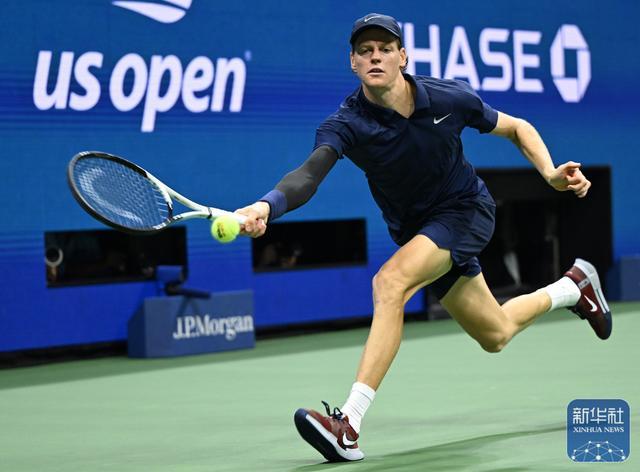 ↑ 辛纳在比赛中回球。新华社记者 李睿 摄