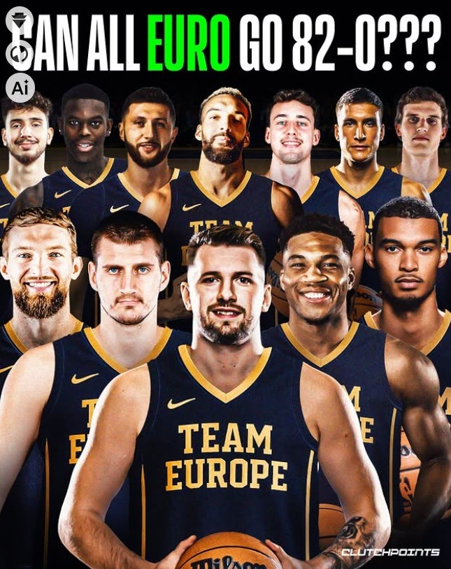 全欧洲球员阵容:东契奇、字母哥、约基奇、文班亚马、小萨博尼斯、戈贝尔、小瓦格纳、努尔基奇、博格丹、施罗德、申京、马尔卡宁。...